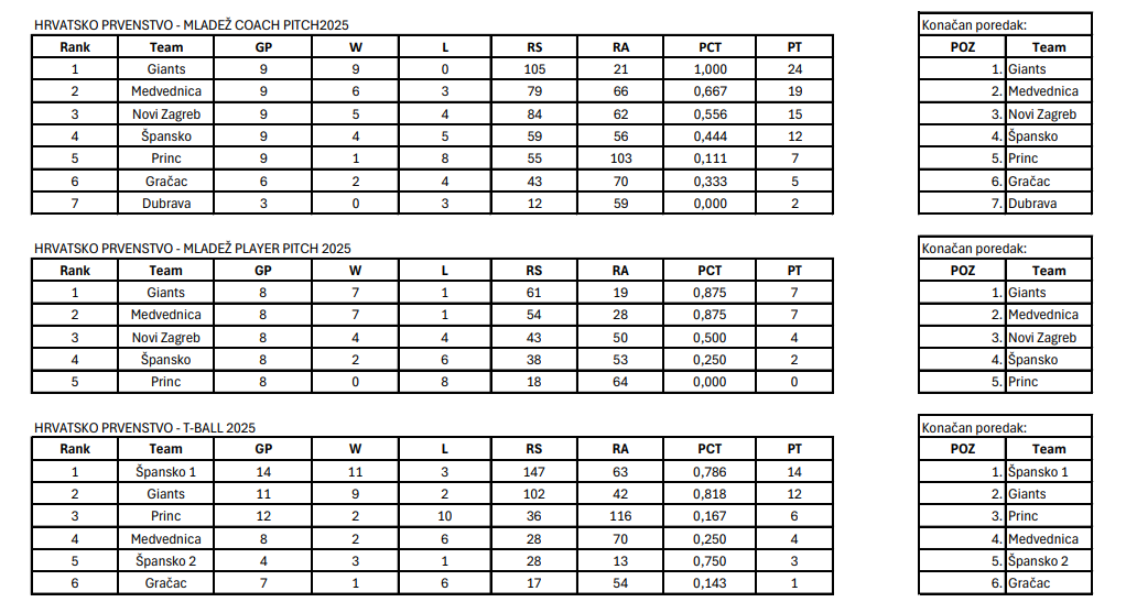 Završena su prvenstva hrvatske i u najmlađim kategorijama,  mladež player pitch, mladež coach pitch te T-ball.